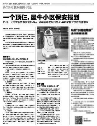 6月29日,浙江國自機器人技術有限公司發(fā)布新款“智能安防機器人”,目前已經(jīng)和杭州多家物業(yè)達成合作意向。最快下半年,他就要出現(xiàn)在杭州某個高檔小區(qū)里了。