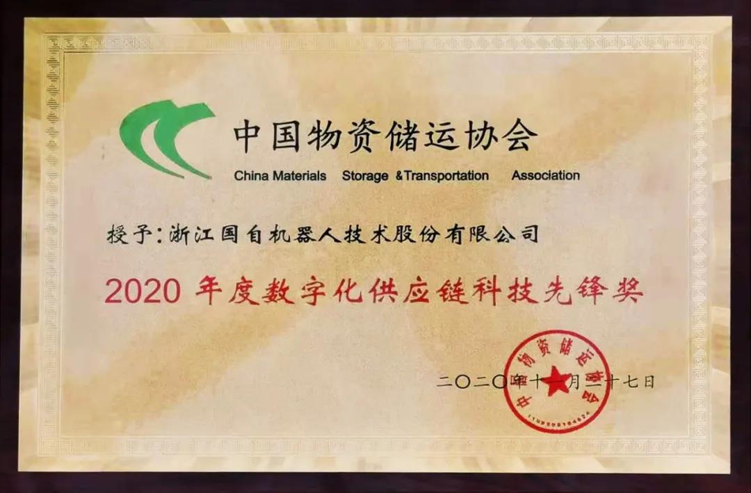 2020年11月27日,由中國物資儲運協會主辦的2020第七屆中國儲運發展高峰論壇在山東煙臺隆重召開,同期公布了“2020年度數字供應鏈企業”評選結果。國自機器人憑借在數字供應鏈方面的創新成果,榮獲“2020年度數字供應鏈科技先鋒獎”,中國物資儲運協會李勇昭會長等行業領導為獲獎企業頒獎授牌。